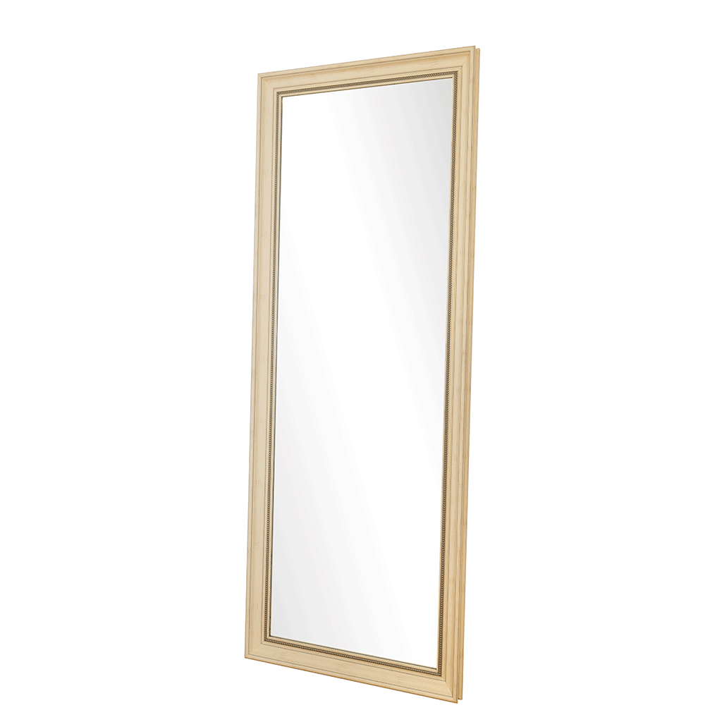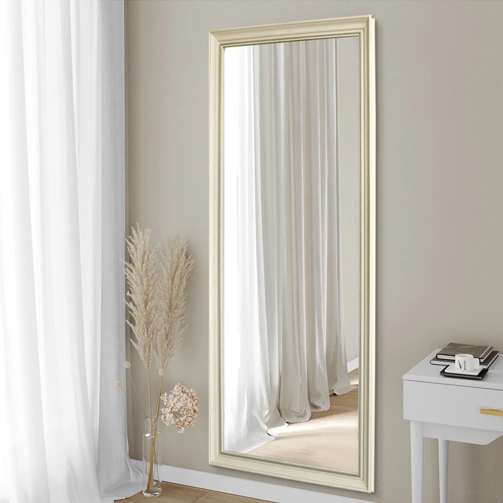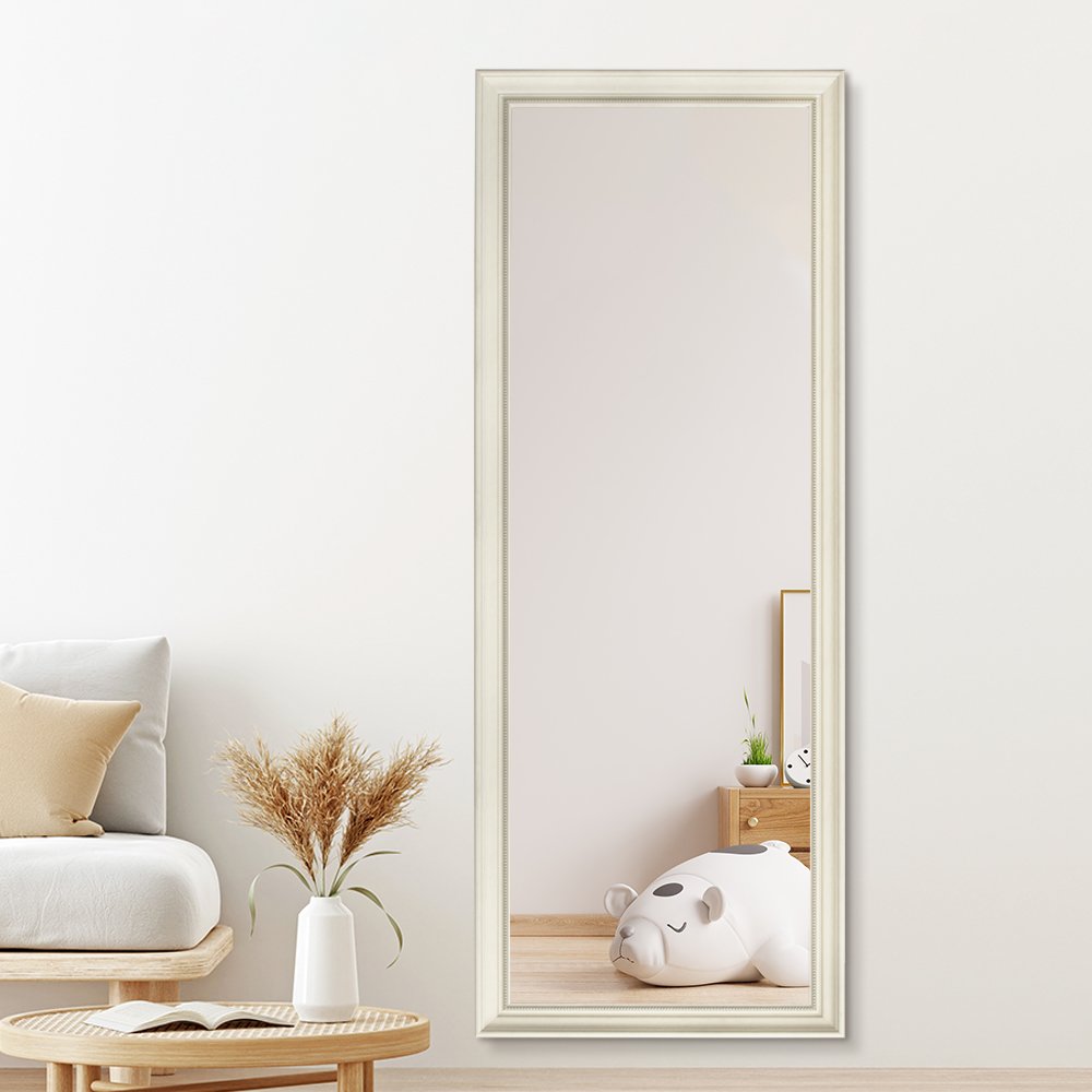 Antique white full-length mirror with a classic PS frame